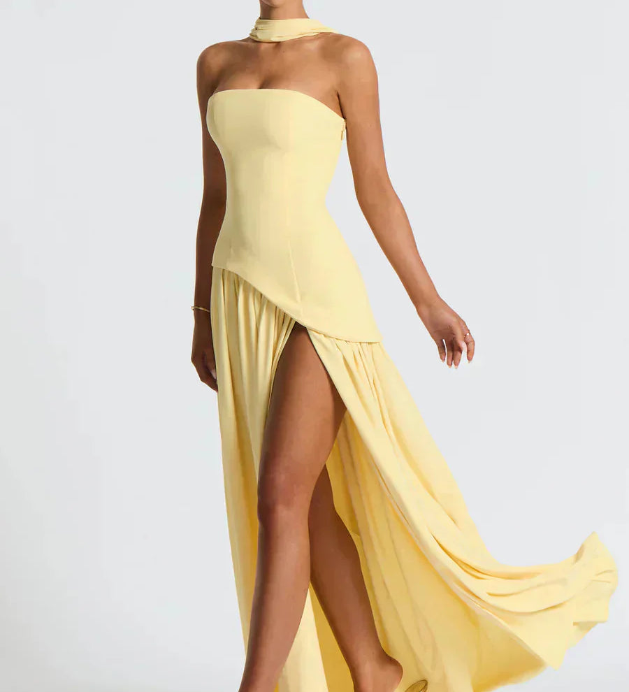 Maxi Dress with Asymmetrical Shoulder and Slit