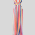 • Výrazný vzor – Živé vícebarevné pruhy, které prodlužují linie postavy