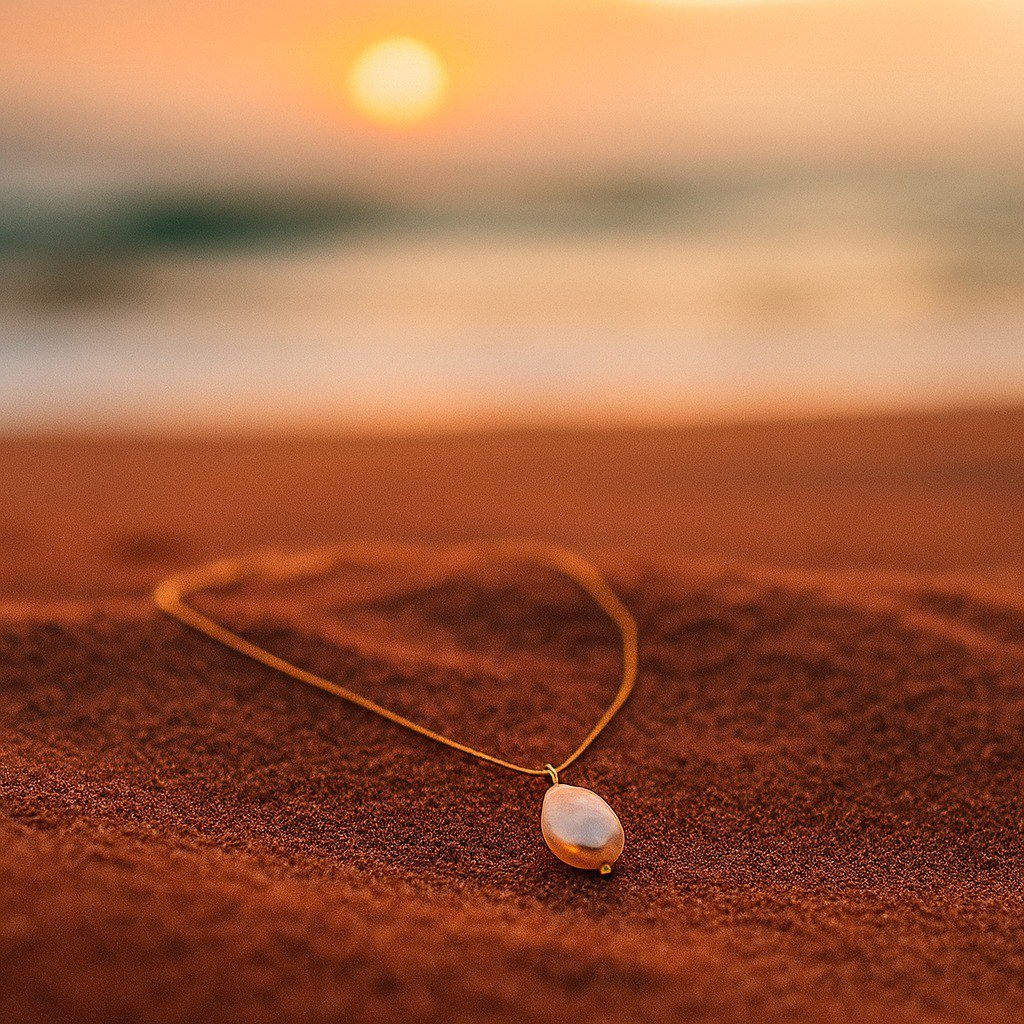Meredith náhrdelník je poctou prvním paprskům slunce v Sahaře, které jemně osvětlují nekonečné duny. Na jemném zlatém okraji se vznáší pečlivě broušená oválná perla, která odráží světlo skrytého oázy. Tento šperk je jako první šeptání rána: čistý, minimalistický a hluboce poetický.