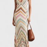 Agustina-mekko vyzařuje čistou eleganci díky jemné krajce a decentnímu zigzagovému vzoru. Vzor vytváří lehkou texturu, která ožívá s každým pohybem. Hluboký V-výstřih dodává ženskou sofistikovanost, zatímco dlouhý střih přirozeně obepíná postavu se stylem a důstojností.
