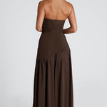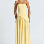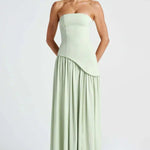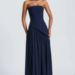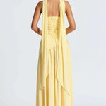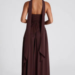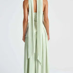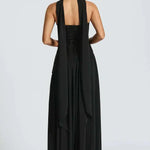 Moderní elegance navržená pro Amary maxi šaty bez námahy spojuje strukturu a lehkost. Přiléhavý vršek zvýrazňuje postavu, zatímco asymetrický pas a dlouhá sukně vytvářejí plynulý pohyb. Speciální detail? Odnímatelný šátek, který mění styl: noste ho jako kravatu, volně uvázaný na zádech nebo elegantně skládán pro všestranné styling.