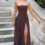 Vysoký přední rozparek dodává odvážný vzhled a zlepšené pohodlí díky pružnému materiálu – šaty jsou ideální na svatby, gala akce nebo večery, kdy chcete být středem pozornosti.