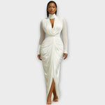 Elegant High-Neck Draped Evening Gown