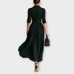 Elegant Pleated Lapel Waisted Long-sleeved Maxi Dress