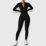 The Eliana jumpsuit combines elegance and comfort in a modern design. With its high collar and practical zip, it makes a contemporary statement and is ideal for any occasion.