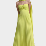 Showcase your radiance and femininity with this dazzling maxi dress in vibrant yellow. Its pleated texture and strapless design harmoniously embrace your silhouette, offering an air of elegance and effortless luxury for every occasion.