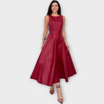 Discover the timeless charm of the midi dress in faux leather, perfect for those seeking a refined and modern look. With its sleeveless design, round neckline, and tailored fit, this dress emphasises the silhouette with class and femininity.