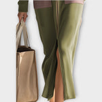Effortless elegance meets everyday comfort in this olive zip-up maxi dress, designed for the woman who loves refined casual wear. Its tailored fit and contrasting pockets bring a modern twist to a timeless silhouette.